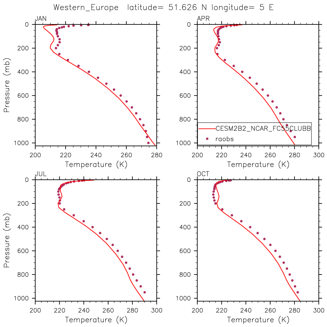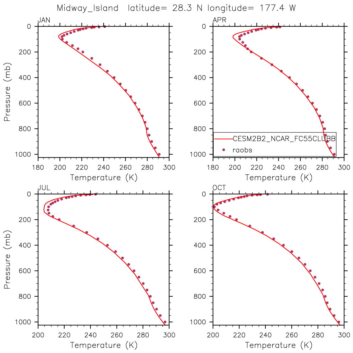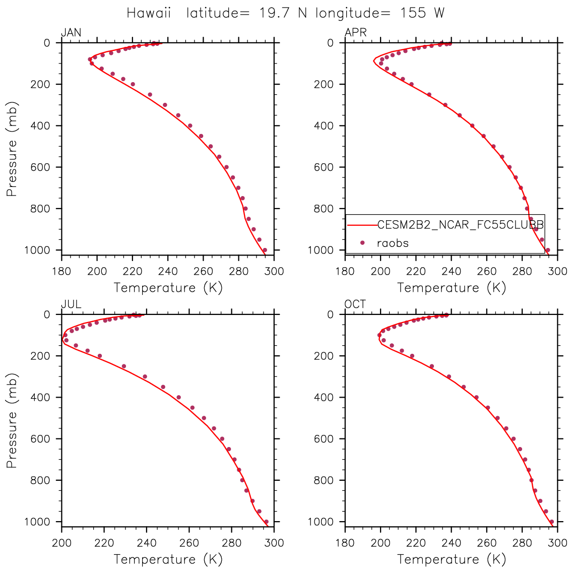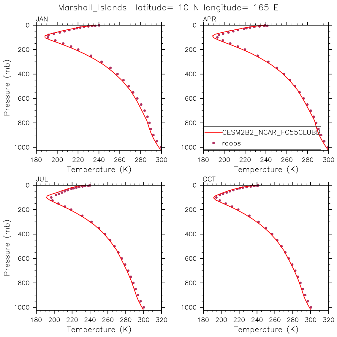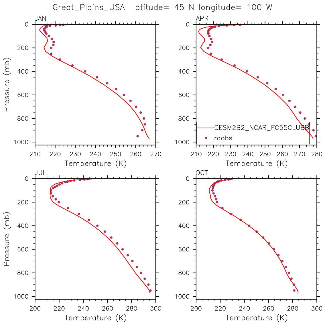 CESM2B2_NCAR_FC55CLUBB Set 12 - Vertical Profiles at 17 selected raobs stations