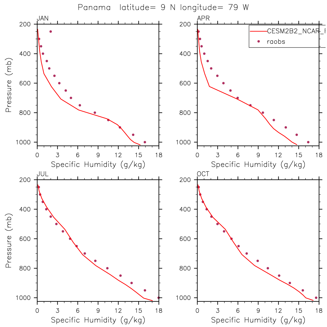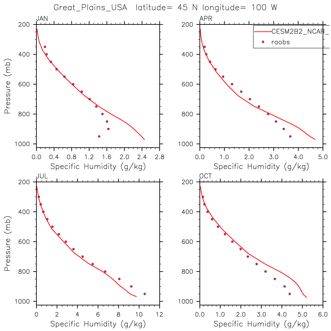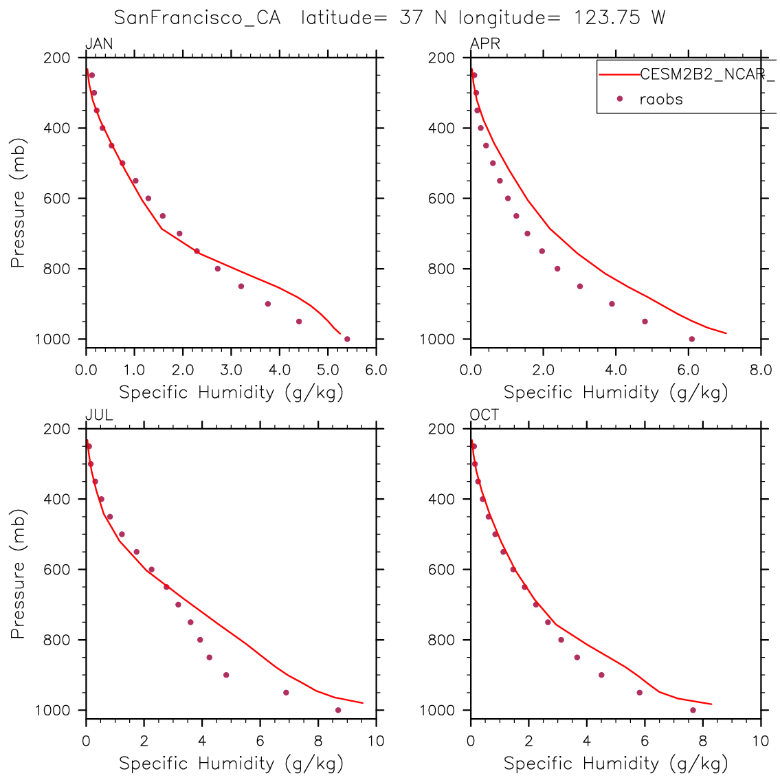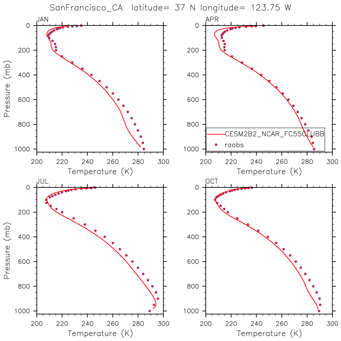 CESM2B2_NCAR_FC55CLUBB Set 12 - Vertical Profiles at 17 selected raobs stations