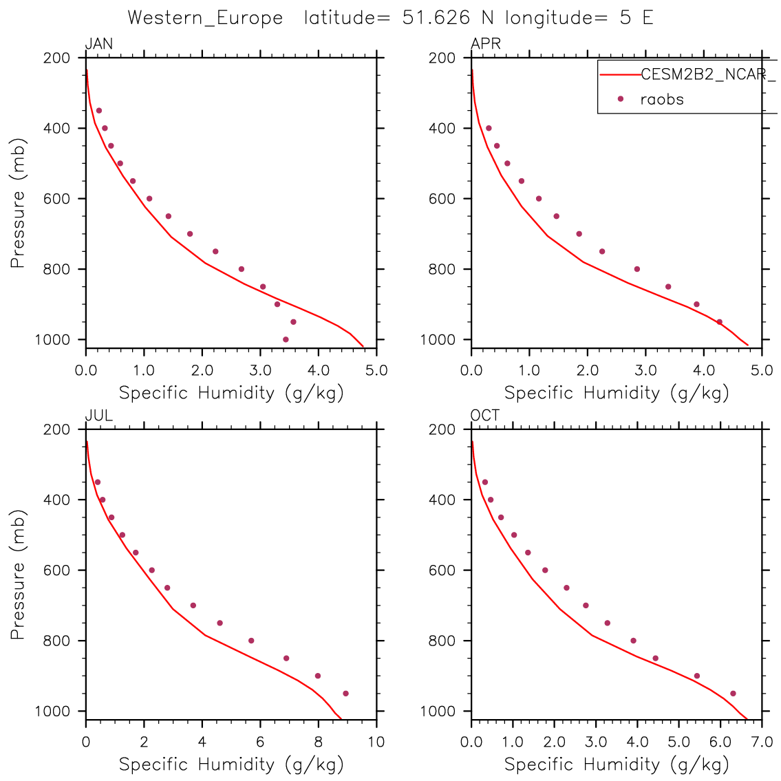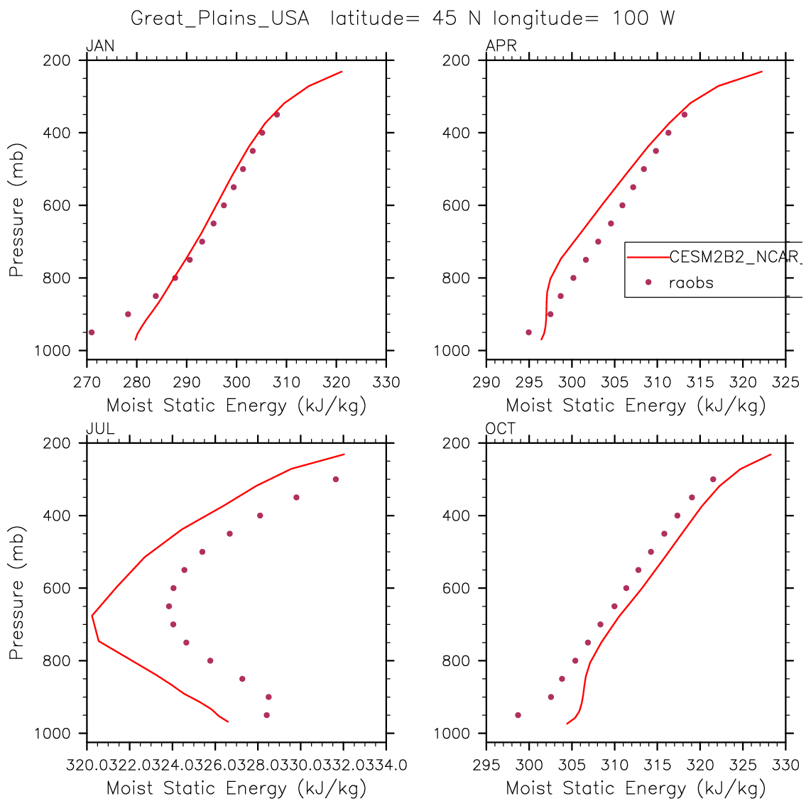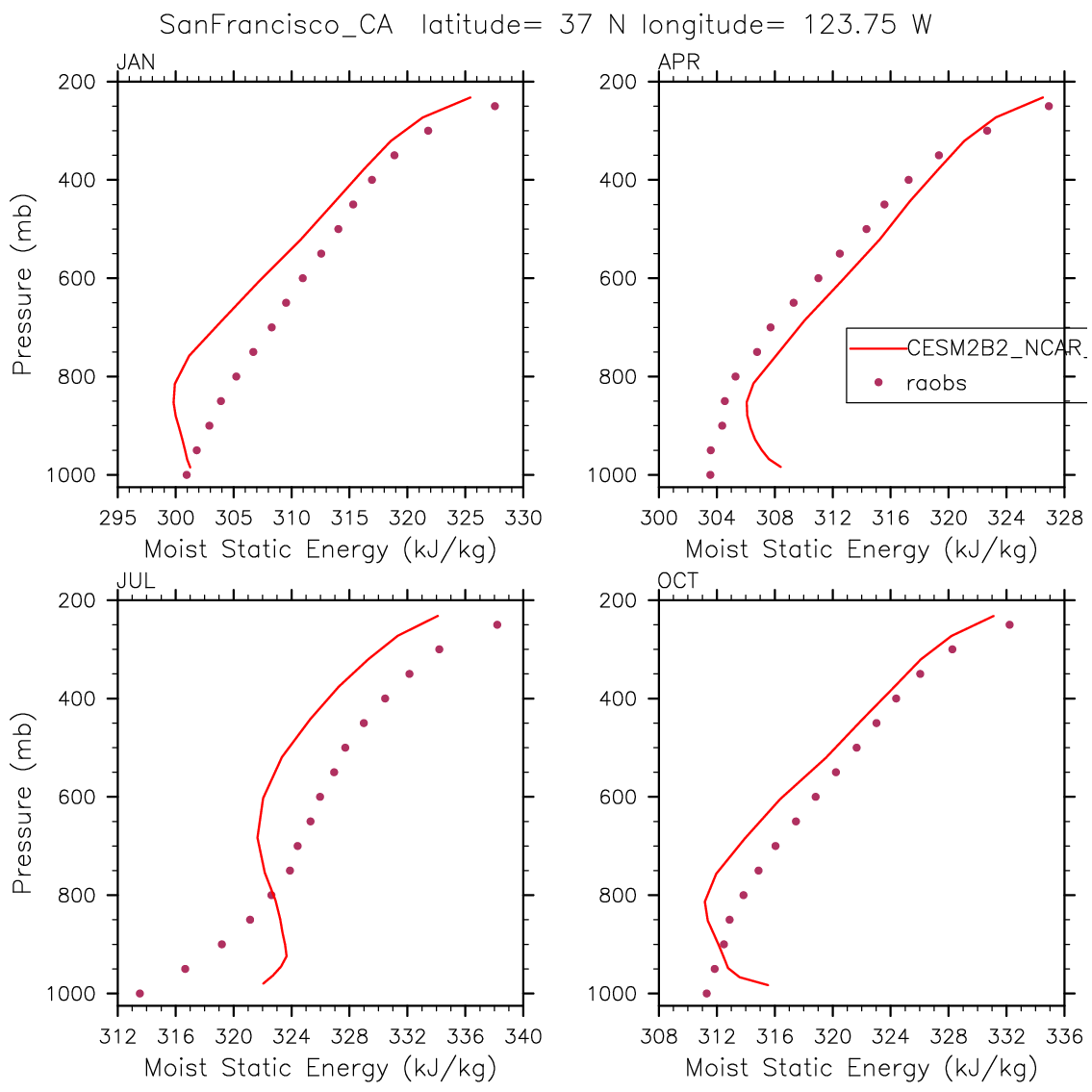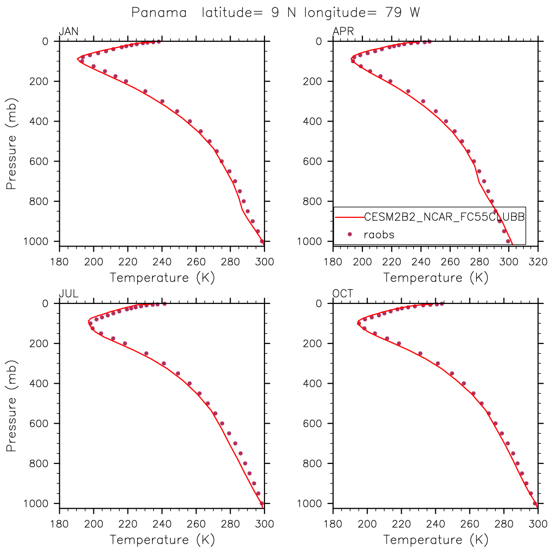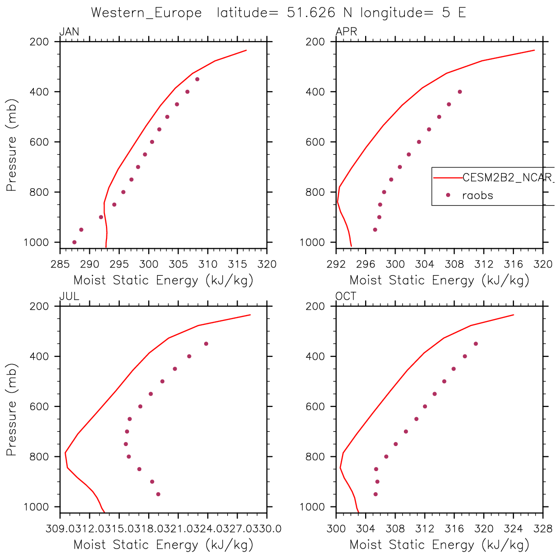 CESM2B2_NCAR_FC55CLUBB Set 12 - Vertical Profiles at 17 selected raobs stations