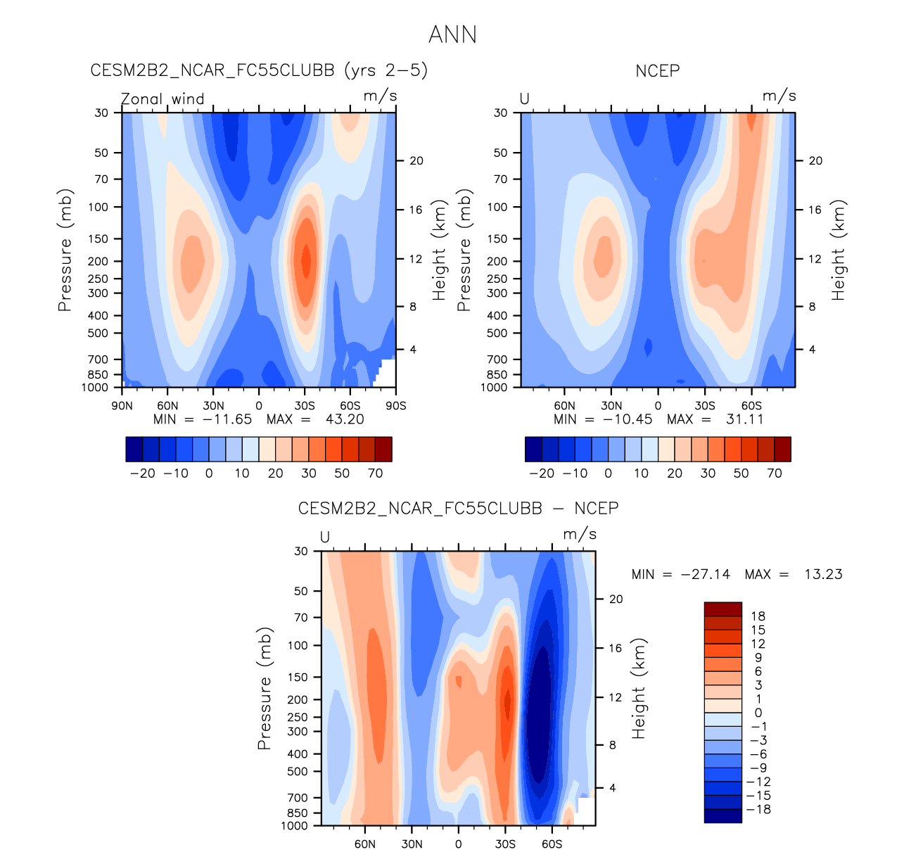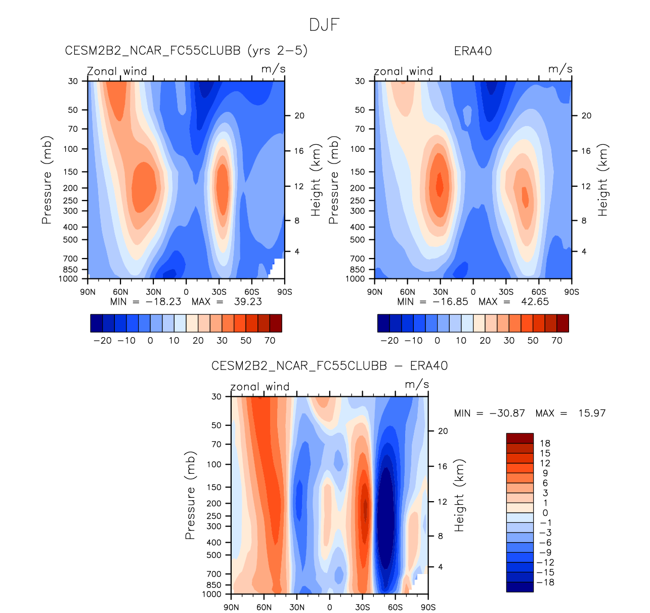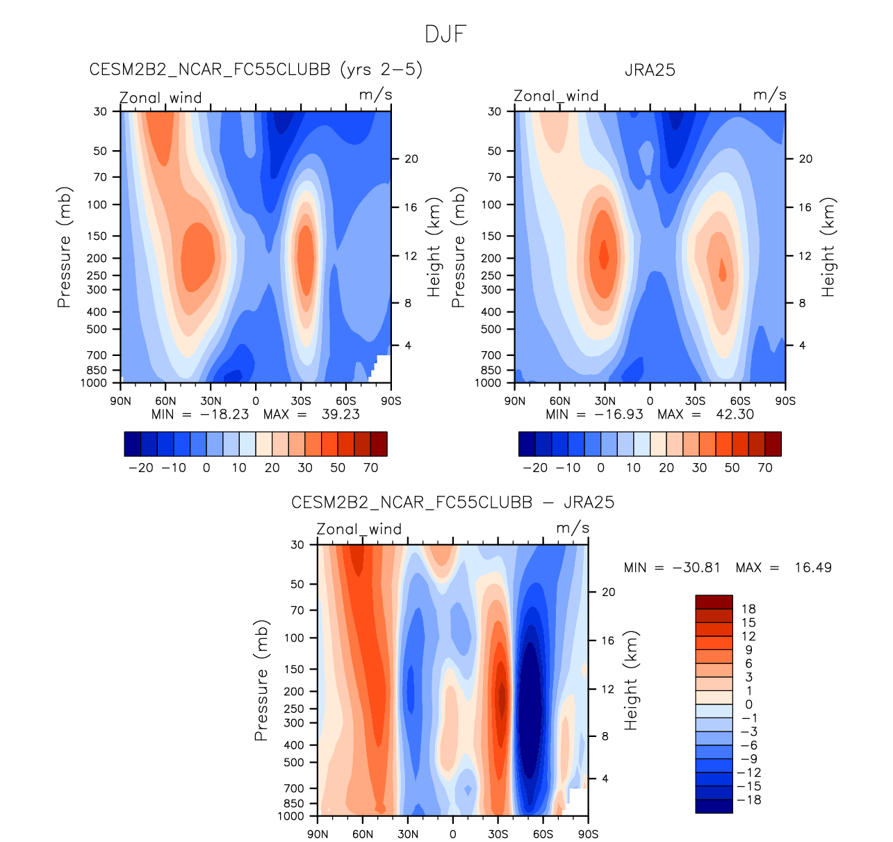 DIAG Set 4 - Vertical contour plots of DJF, JJA and ANN zonal means
