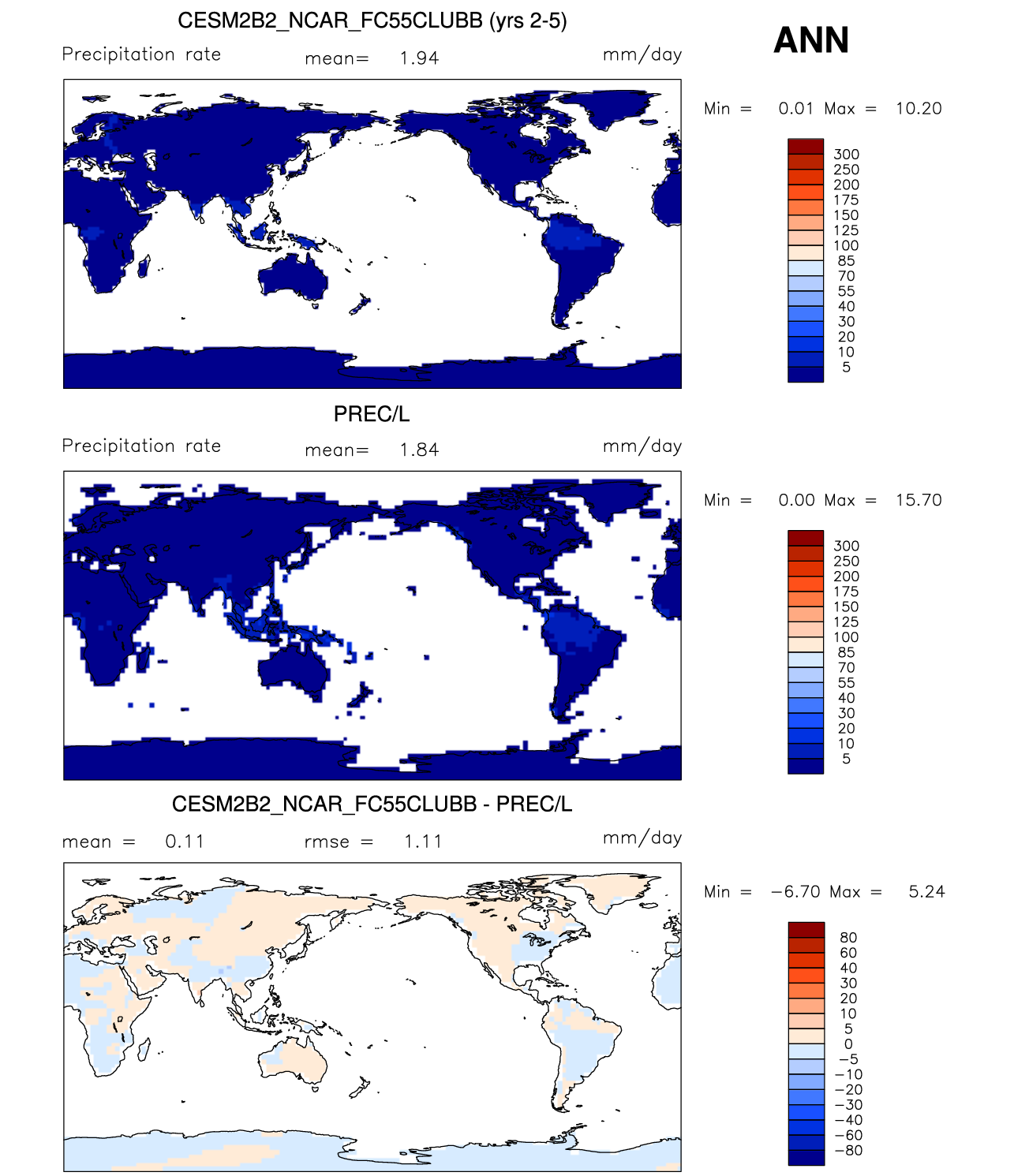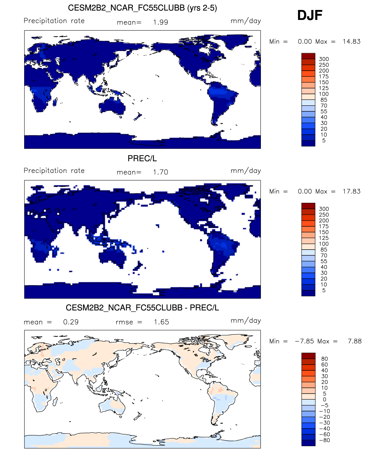 | PRECT_LAND | Precipitation rate (land) | plot | plot | plot |
