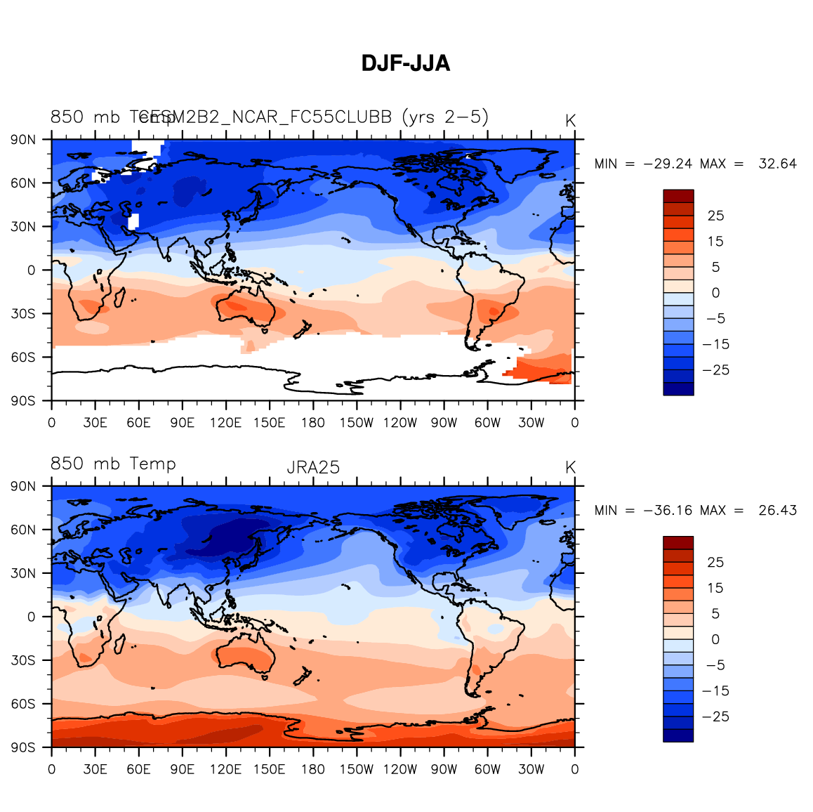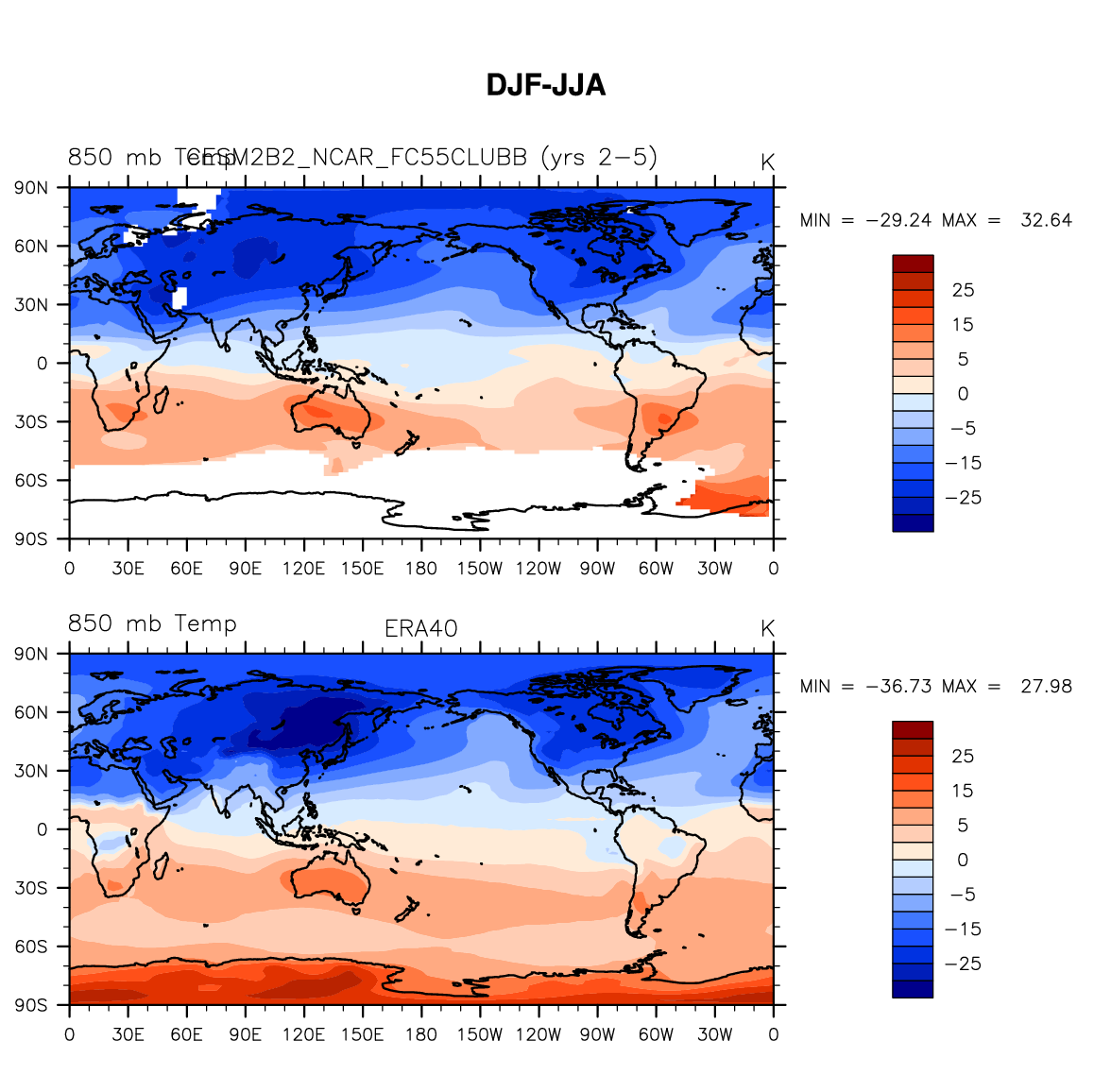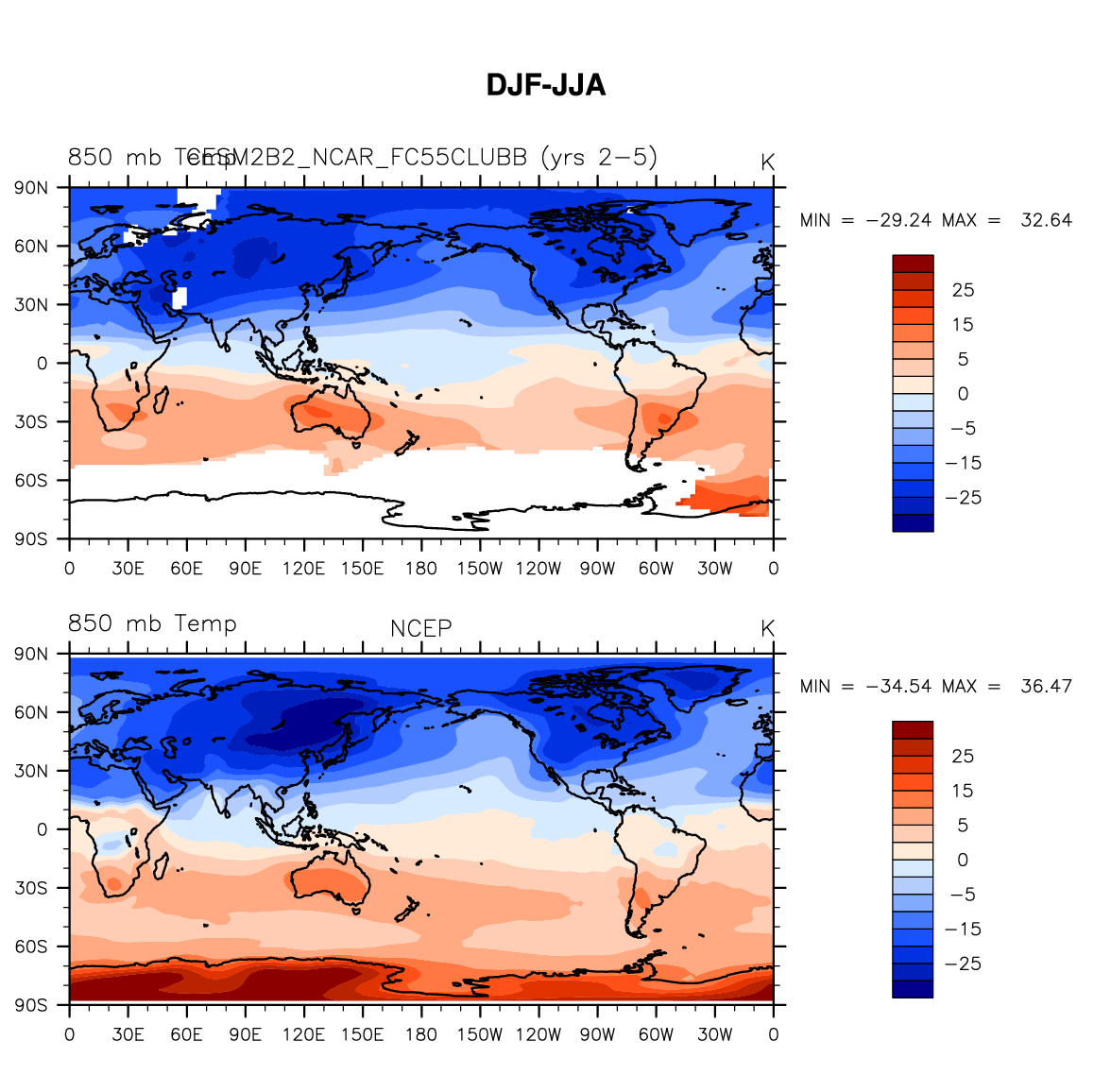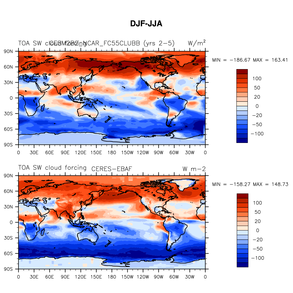 CESM2B2_NCAR_FC55CLUBB DIAG Set 9 - Horizontal contour plots of DJF-JJA differences