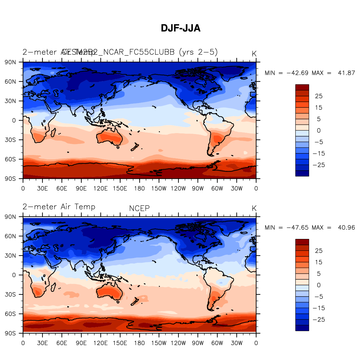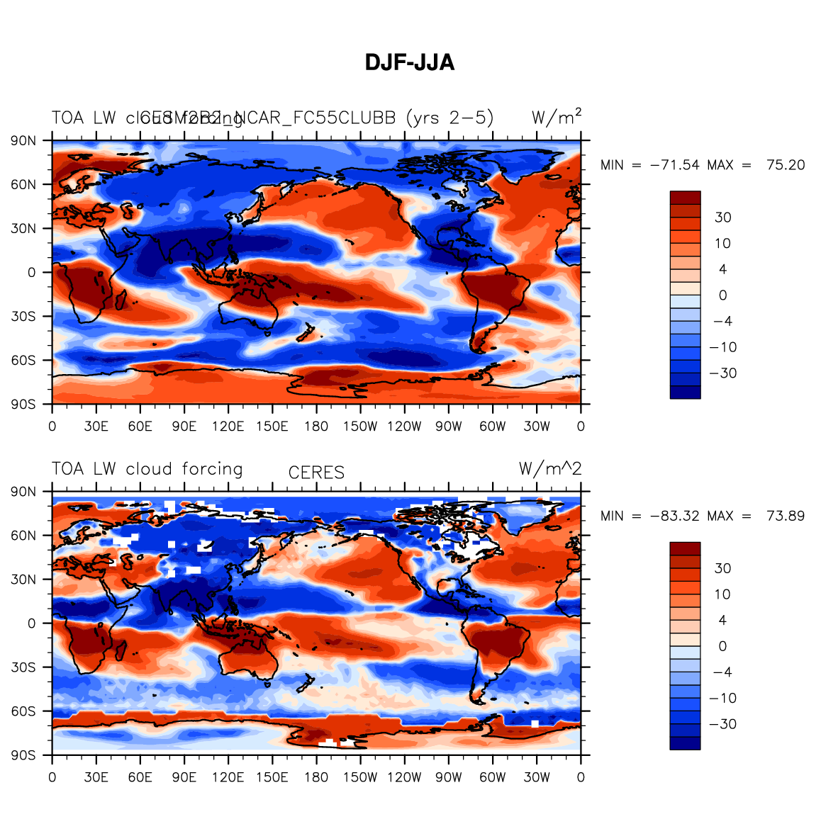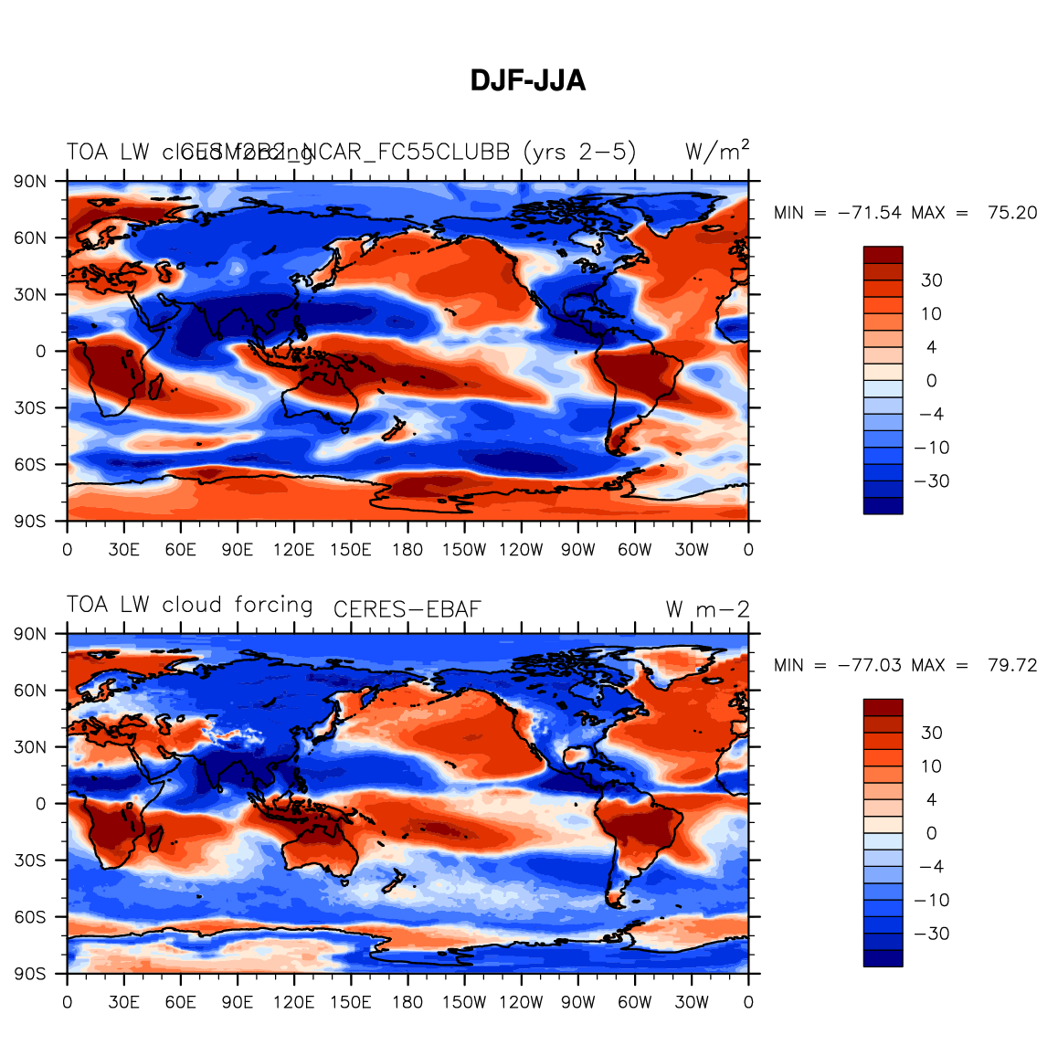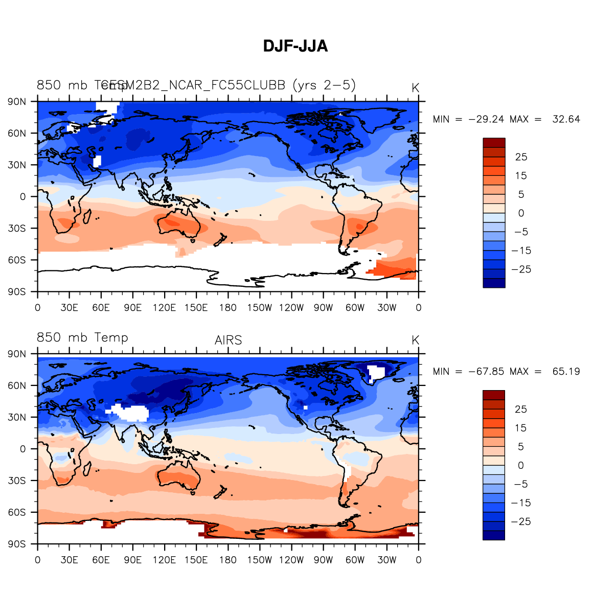 CESM2B2_NCAR_FC55CLUBB DIAG Set 9 - Horizontal contour plots of DJF-JJA differences