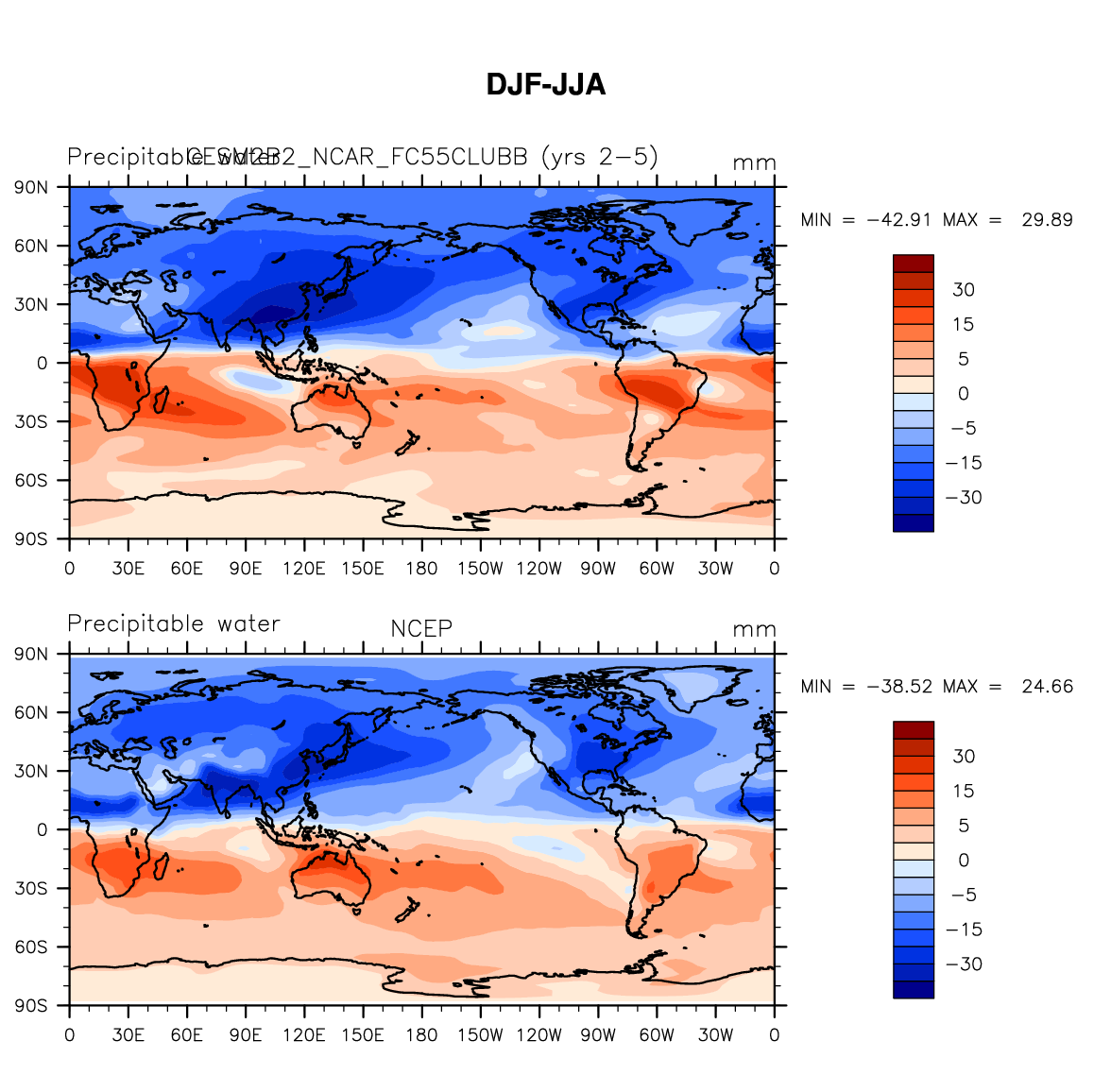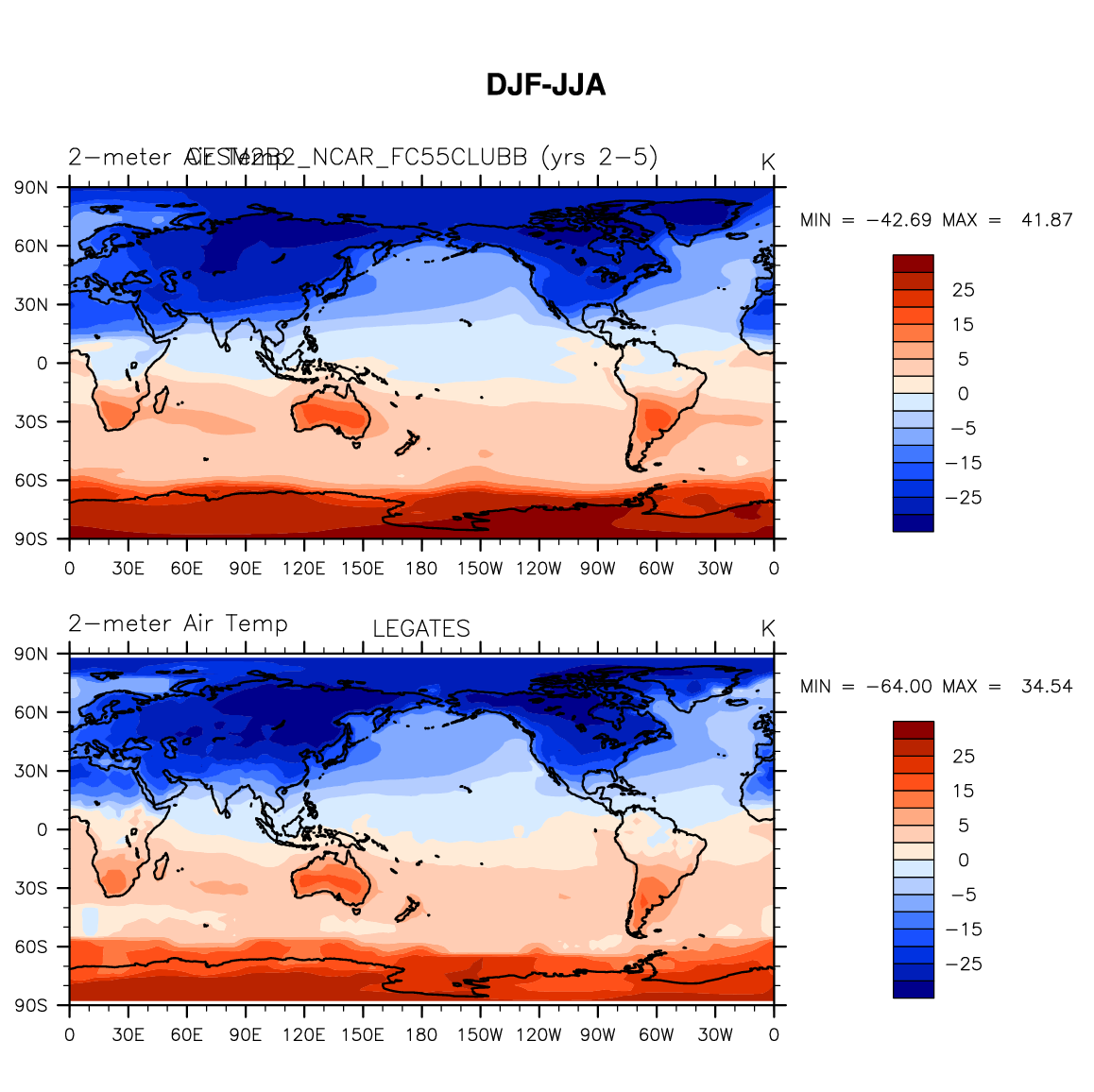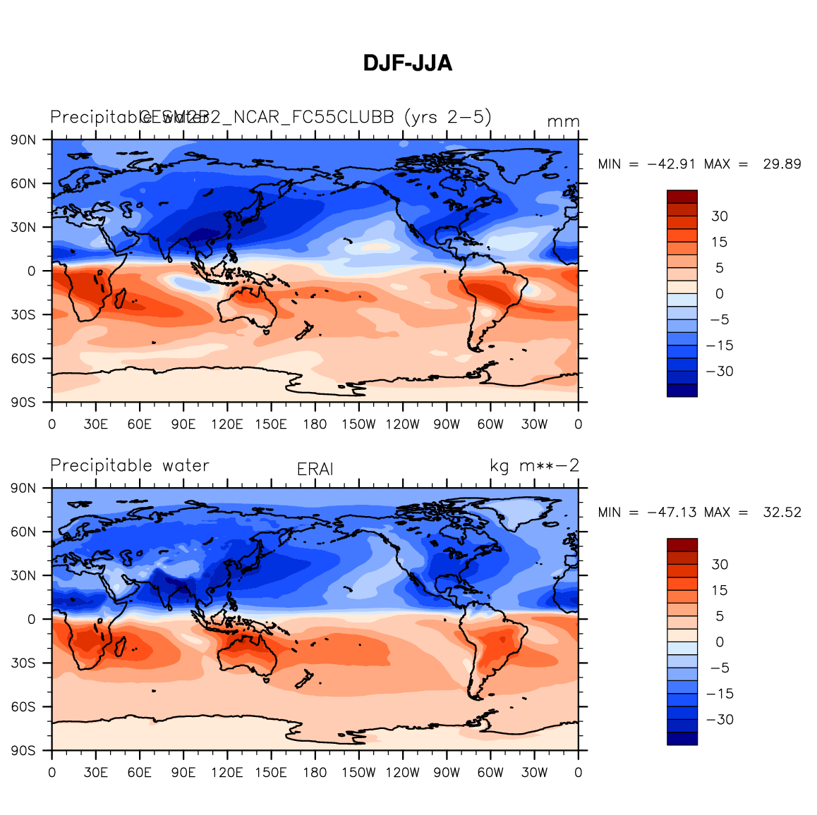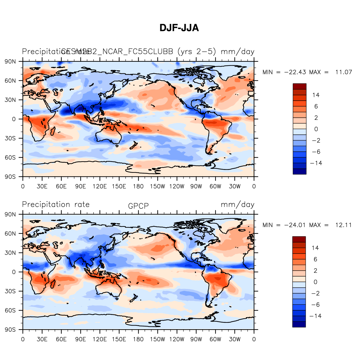 CESM2B2_NCAR_FC55CLUBB DIAG Set 9 - Horizontal contour plots of DJF-JJA differences