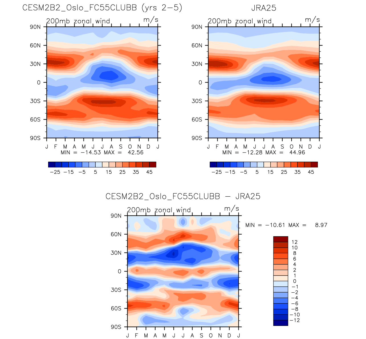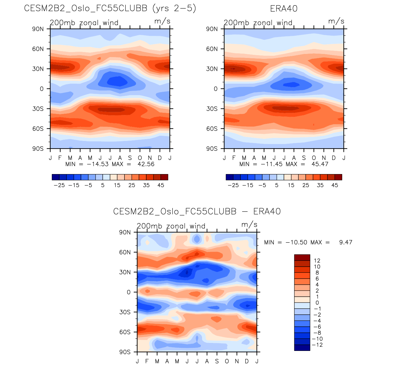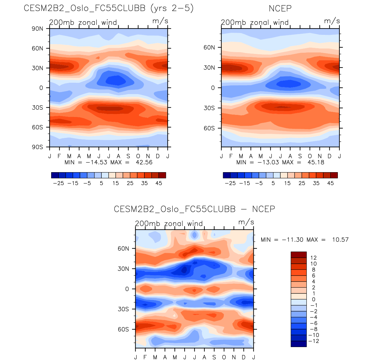 CESM2B2_Oslo_FC55CLUBB DIAG Set 8 - Annual cycle contour plots of zonal means