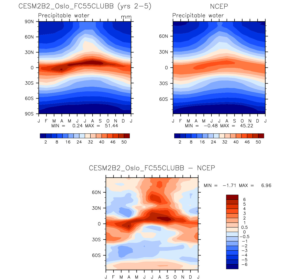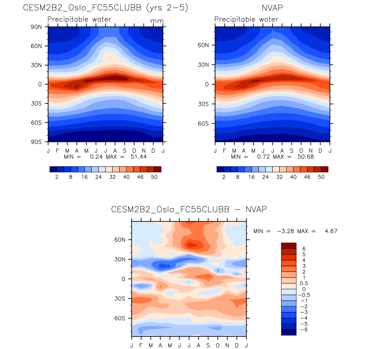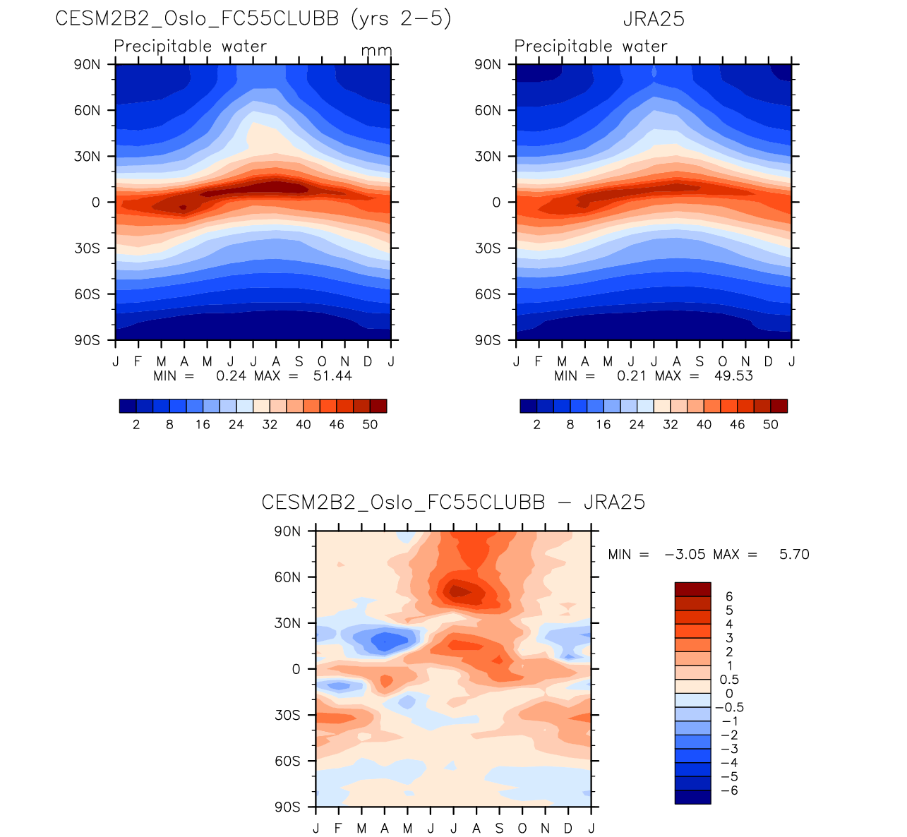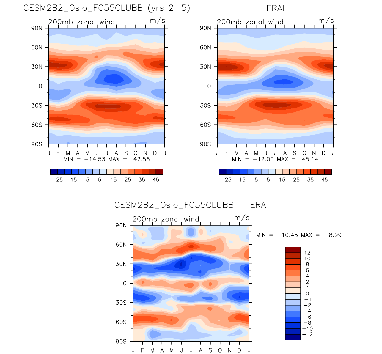CESM2B2_Oslo_FC55CLUBB DIAG Set 8 - Annual cycle contour plots of zonal means
