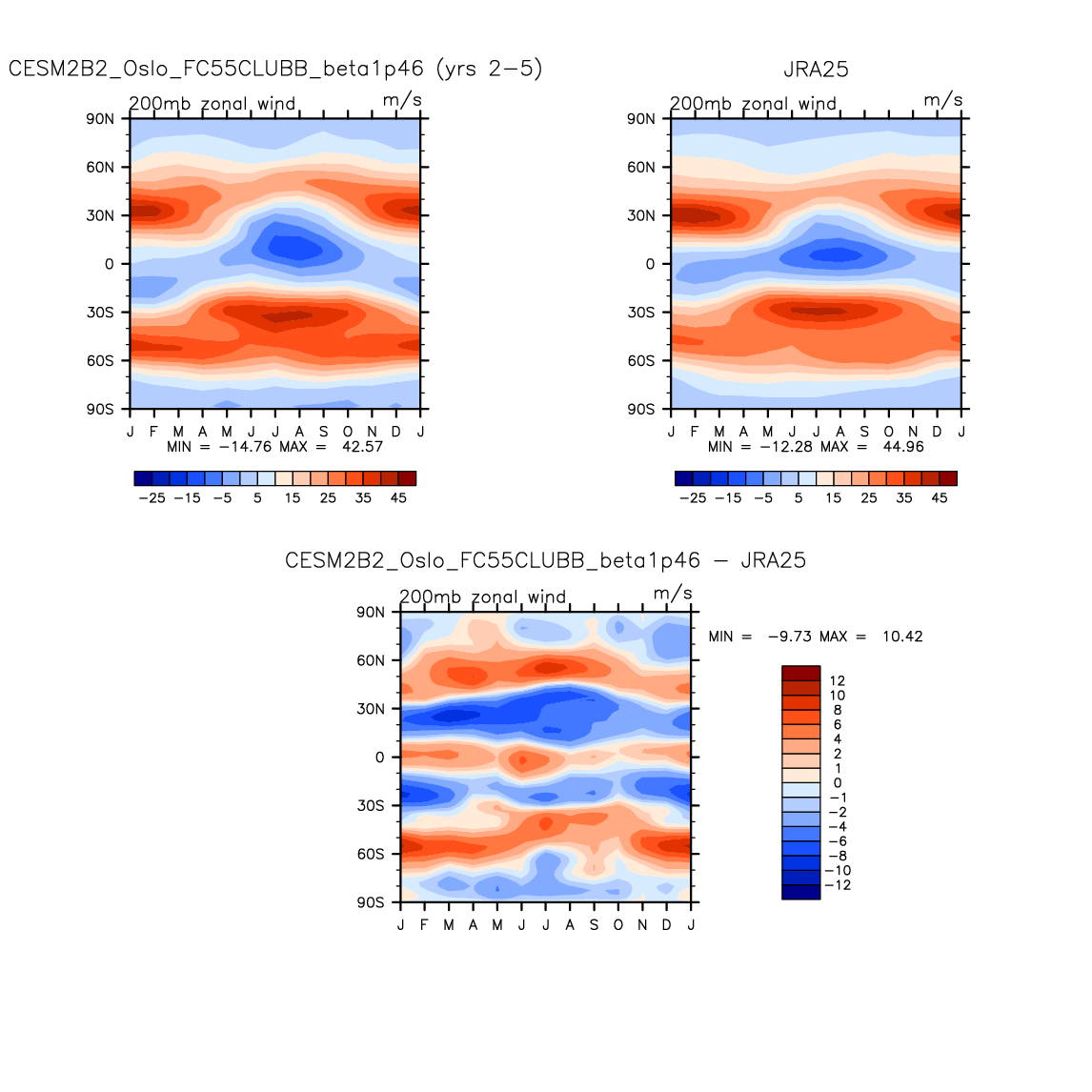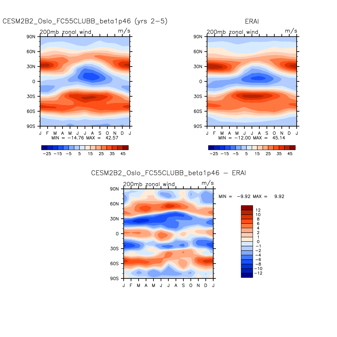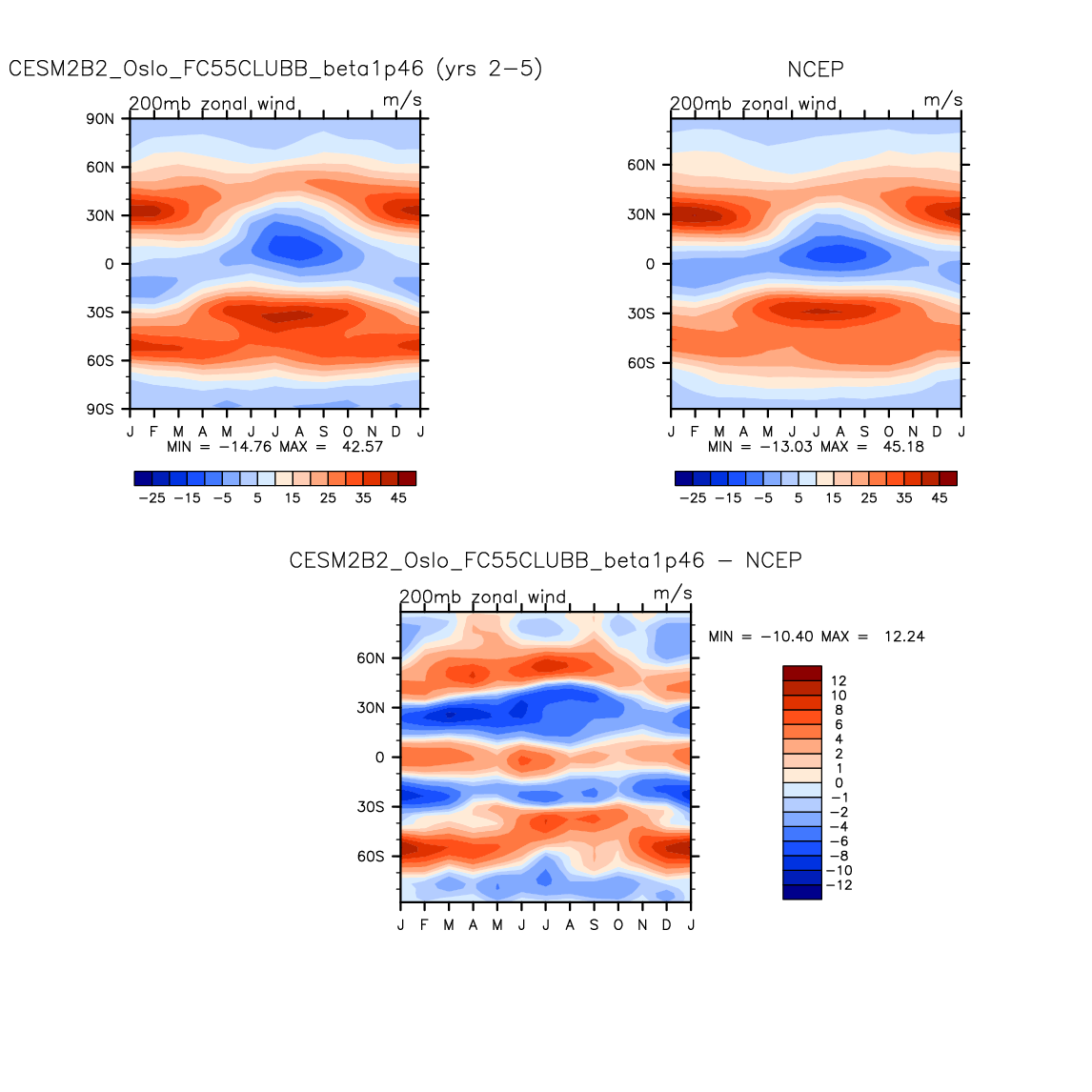 CESM2B2_Oslo_FC55CLUBB_beta1p46 DIAG Set 8 - Annual cycle contour plots of zonal means
