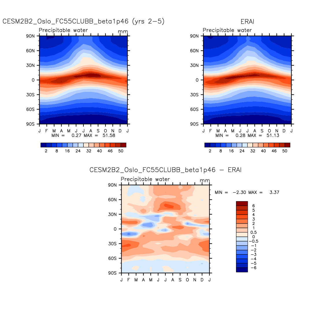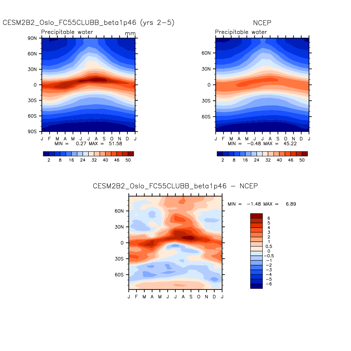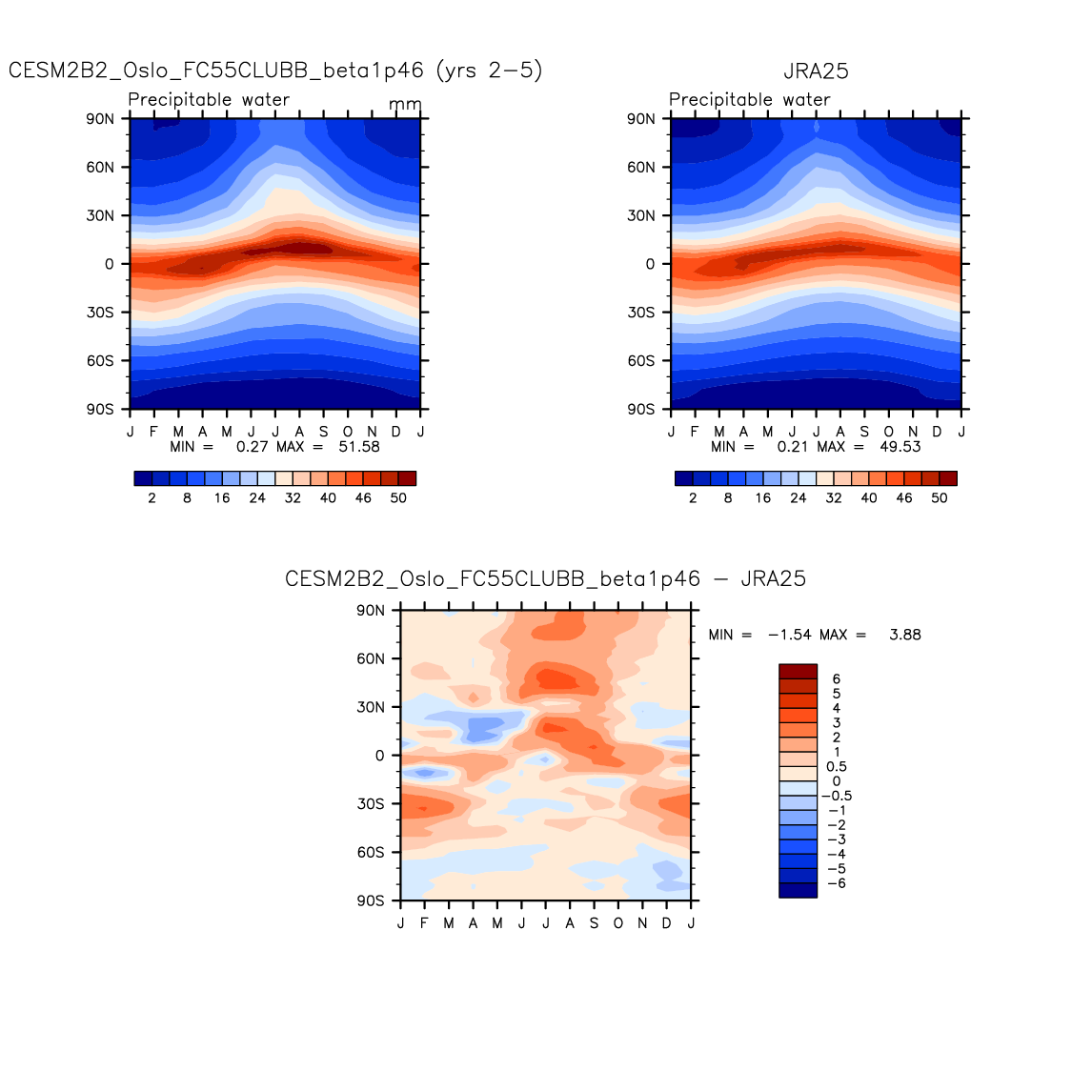 CESM2B2_Oslo_FC55CLUBB_beta1p46 DIAG Set 8 - Annual cycle contour plots of zonal means