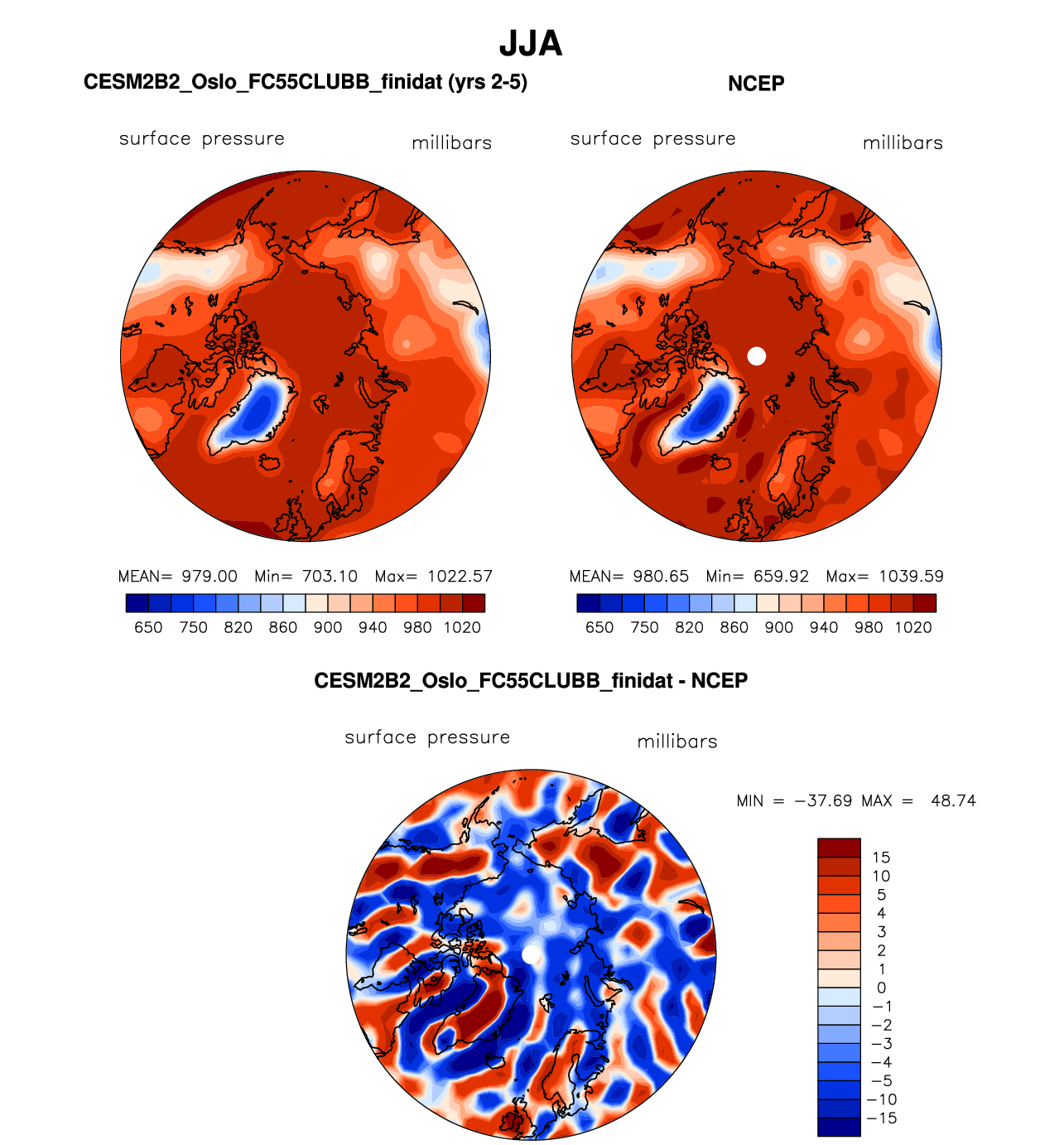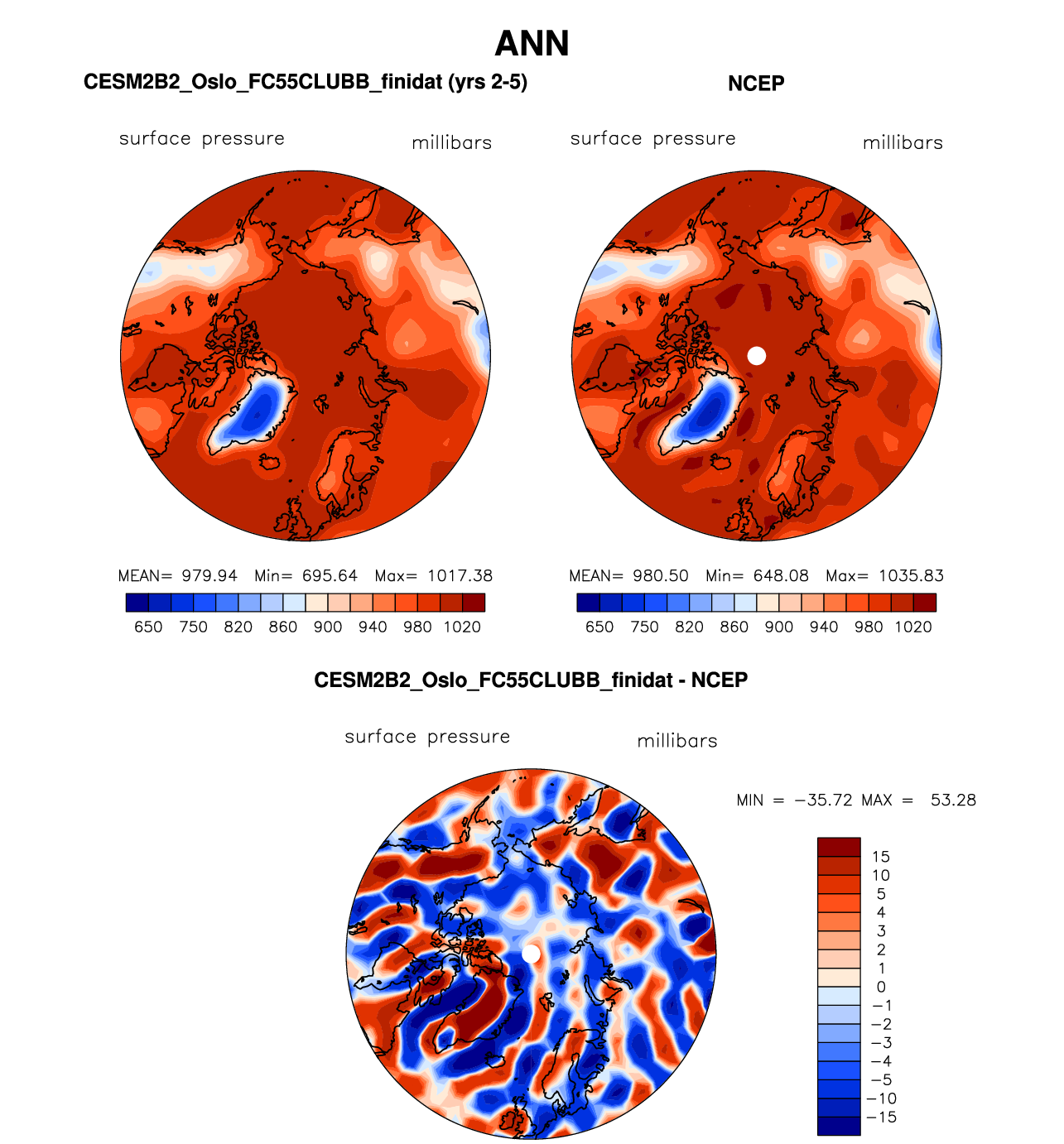 CESM2B2_Oslo_FC55CLUBB_finidat DIAG Set 7 - Polar contour/vector plots of DJF, JJA and ANN means