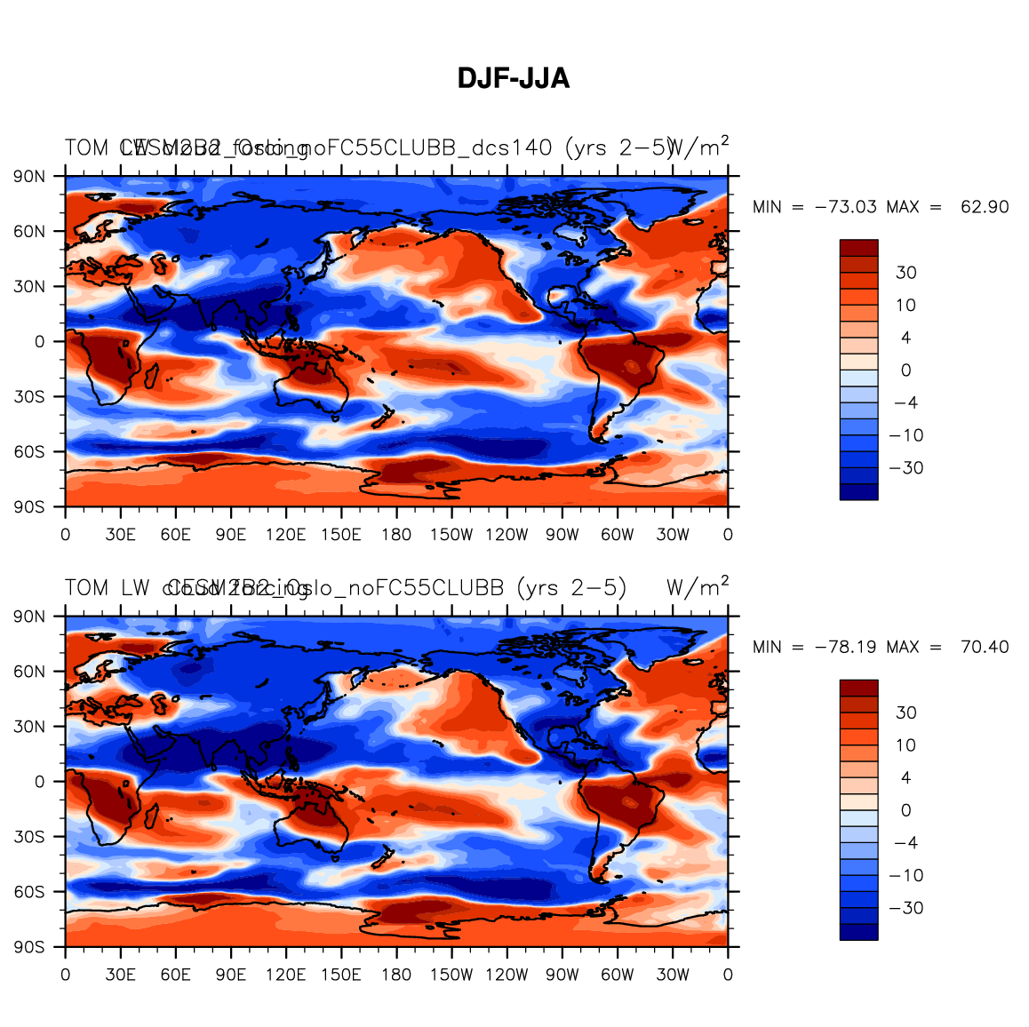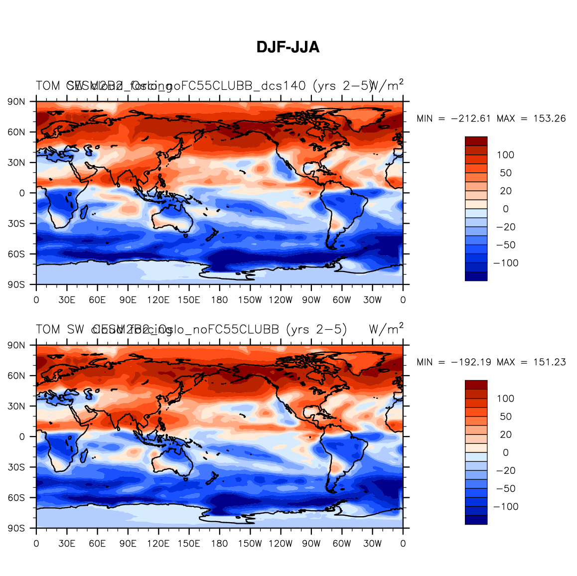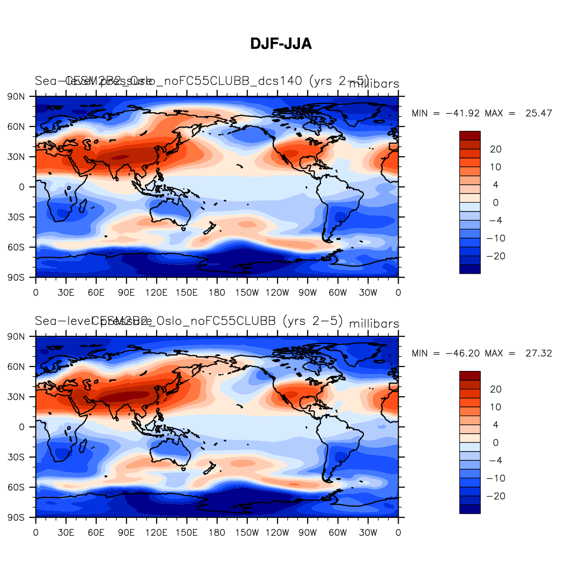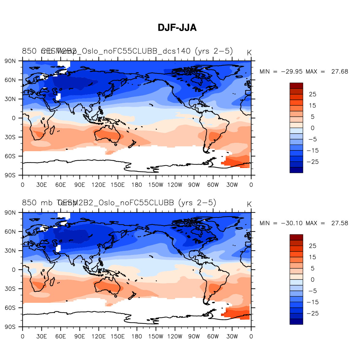 DIAG Set 9 - Horizontal contour plots of DJF-JJA differences