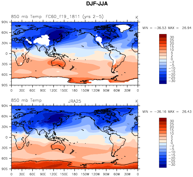 FC60_f19_1811 DIAG Set 9 - Horizontal contour plots of DJF-JJA differences