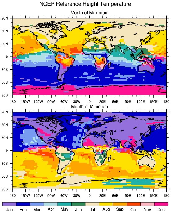 | Temperature Ref Height Month of Max and Min | NFHISTfrc2_f09_mg17_20191107 | NCEP | CAM3 T42 | CAM3 T85 |
