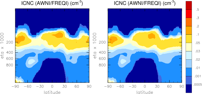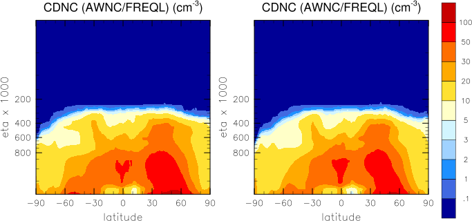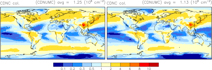 Note: Due to different definitions neither effective cloud dropet radii, cloud droplet concentrations nor vertically integrated cloud droplet concentrations are directly comparable between CAM4-Oslo and CAM5-Oslo